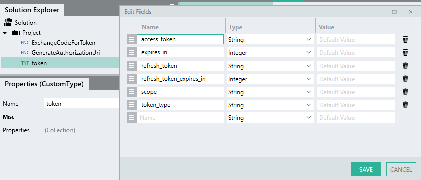 In its current state, the Solution successfully generates and uses the access token. However, to re-authorize and generate a new token each time a request is made is impractical. As Linx does not persist data unless stored as a setting, you will need to store the token in a datasource of some kind (database, text file), in order to retrieve for later use in requests.