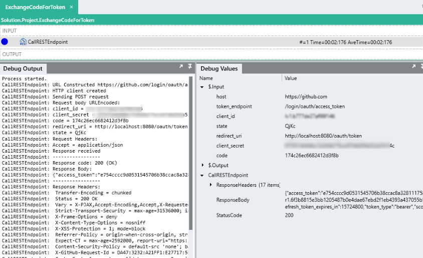 8. Debug the **GenerateAuthorizationUri** process.